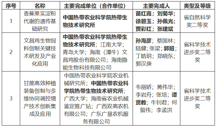 近日,从海南省科学技术奖励大会获悉,我所牵头完成的成果获二等奖2项。