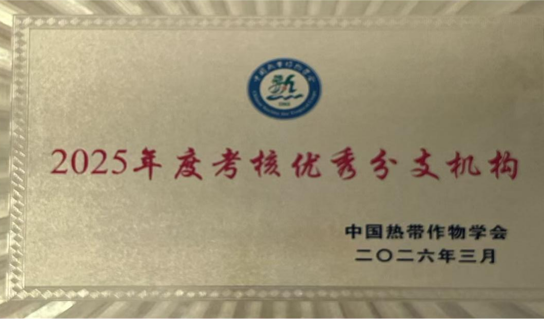 近日,在中国热带作物学会2025年度分支机构考核评比中,生物所支撑建设的中国热带作物学会遗传育种专业委员会和南药专业委员会获年度考核优秀分支机构。