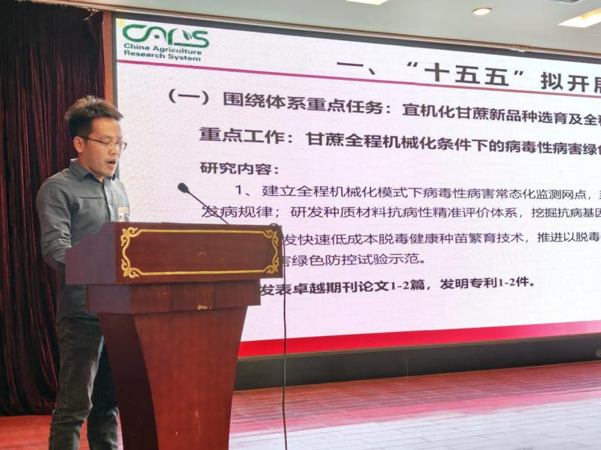 会上,王文治副研究员代表“病毒性病害防控岗位”汇报了“十五五”工作计划。他表示,团队将聚焦体系及甘蔗病虫草害防控研究室重点部署,开展甘蔗全程机械化条件下病毒性病害发生规律调查与绿色防控技术研究示范。同时,依托团队转基因技术优势,联合体系内外科研力量开展协同攻关,重点推进甘蔗抗病基因资源挖掘与功能鉴定工作,培育优异抗病转基因甘蔗新种质,为甘蔗品种改良提供坚实支撑。